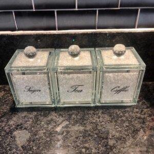 Square Silver Tea Coffee Sugar Canister Set Storage Jar with Swarovski Crystals