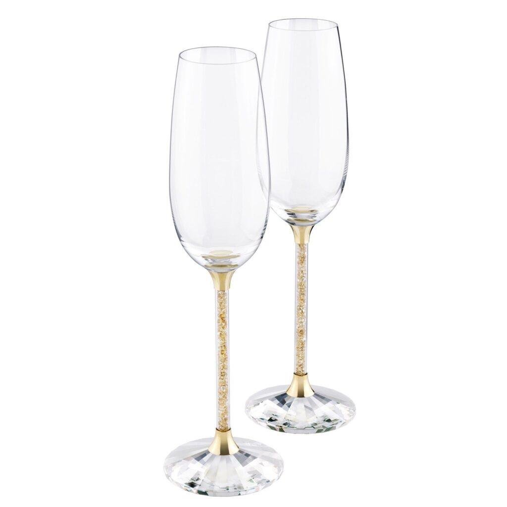 Pair of Swarovski Golden Shadow Crystal Filled Champagne Flutes