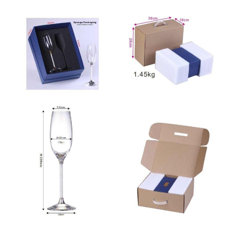 Set of Swarovski Crystal Filled Stem Champagne Flutes & Wine Bottle Stopper