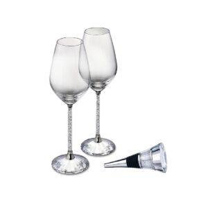 Set of Swarovski Crystal Filled Stem Champagne Flutes & Wine Bottle Stopper