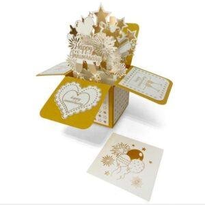 Pop Up 3D Gold Surprise Box Anniversary Card