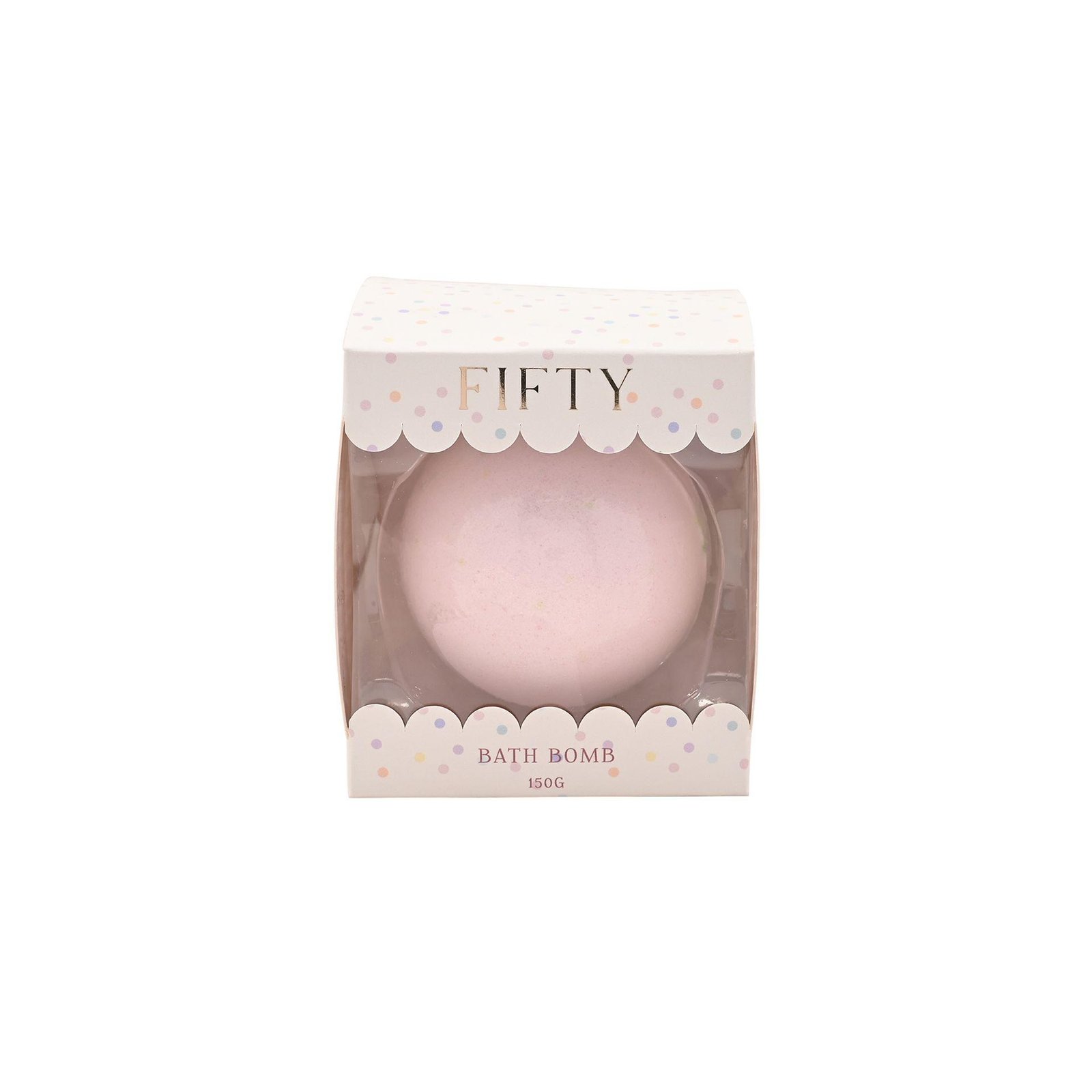 • Pink 50th birthday bath bomb with colourful confetti fizz