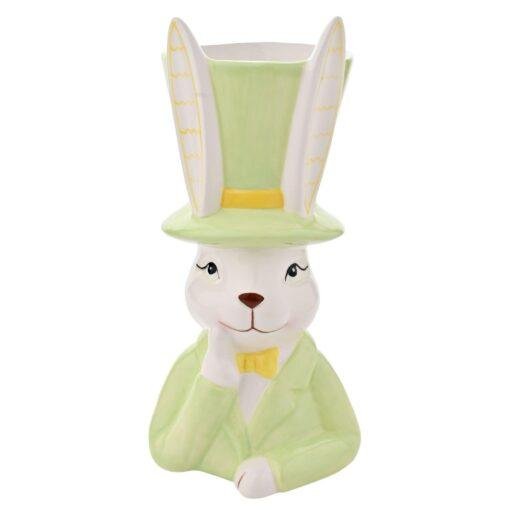 Home Homeware Vases Large Ceramic Easter Bunny in Top Hat Green Planter