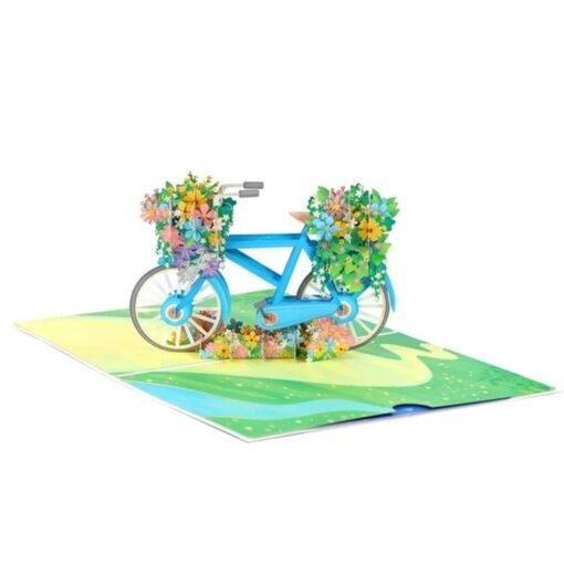 3D Pop-Up Blank Greeting Card – Floral Bicycle Design