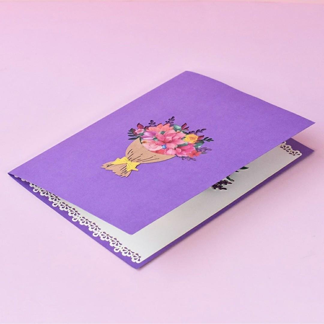 Pop Up 3D Blank Purple Card Floral Bouquet