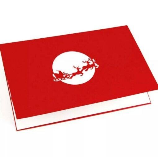 The card comes carefully packed flat but magically opens up to reveal an exciting Santa Sleigh and Reindeers.