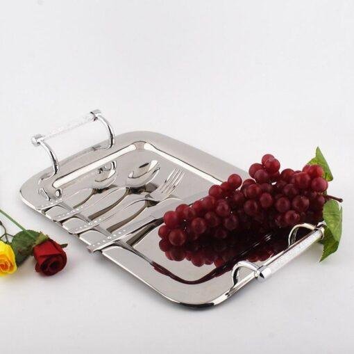 Rectangular Stainless Steel Serving Tray With Swarovski Crystal Filled Handles