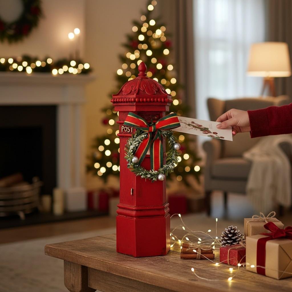 - 30cm traditional red Christmas post box ornament