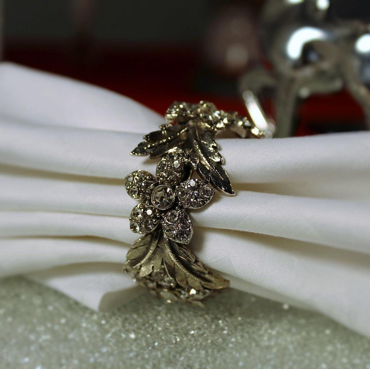 An exquisite set of 4 napkin rings embellished with Swarovski Elements.