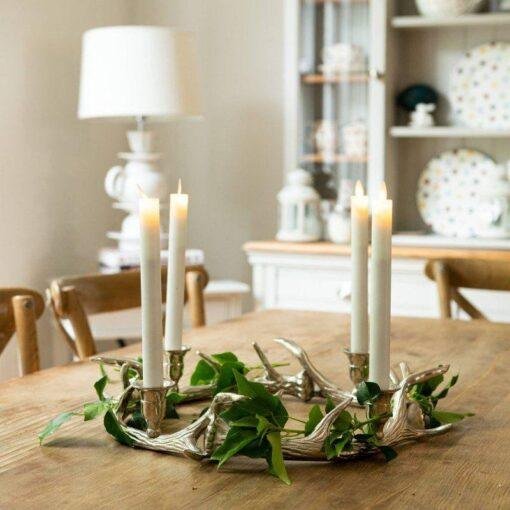 Silver Nickel Circular Antler Candelabra With Four Candle Holders