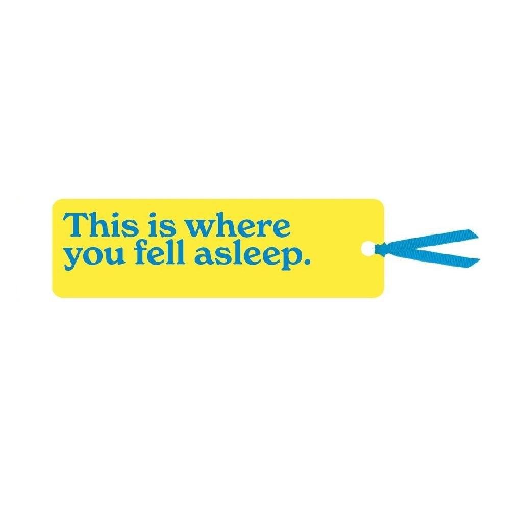 The wording on the bookmark reads: ‘This is Where you Fell Asleep’.